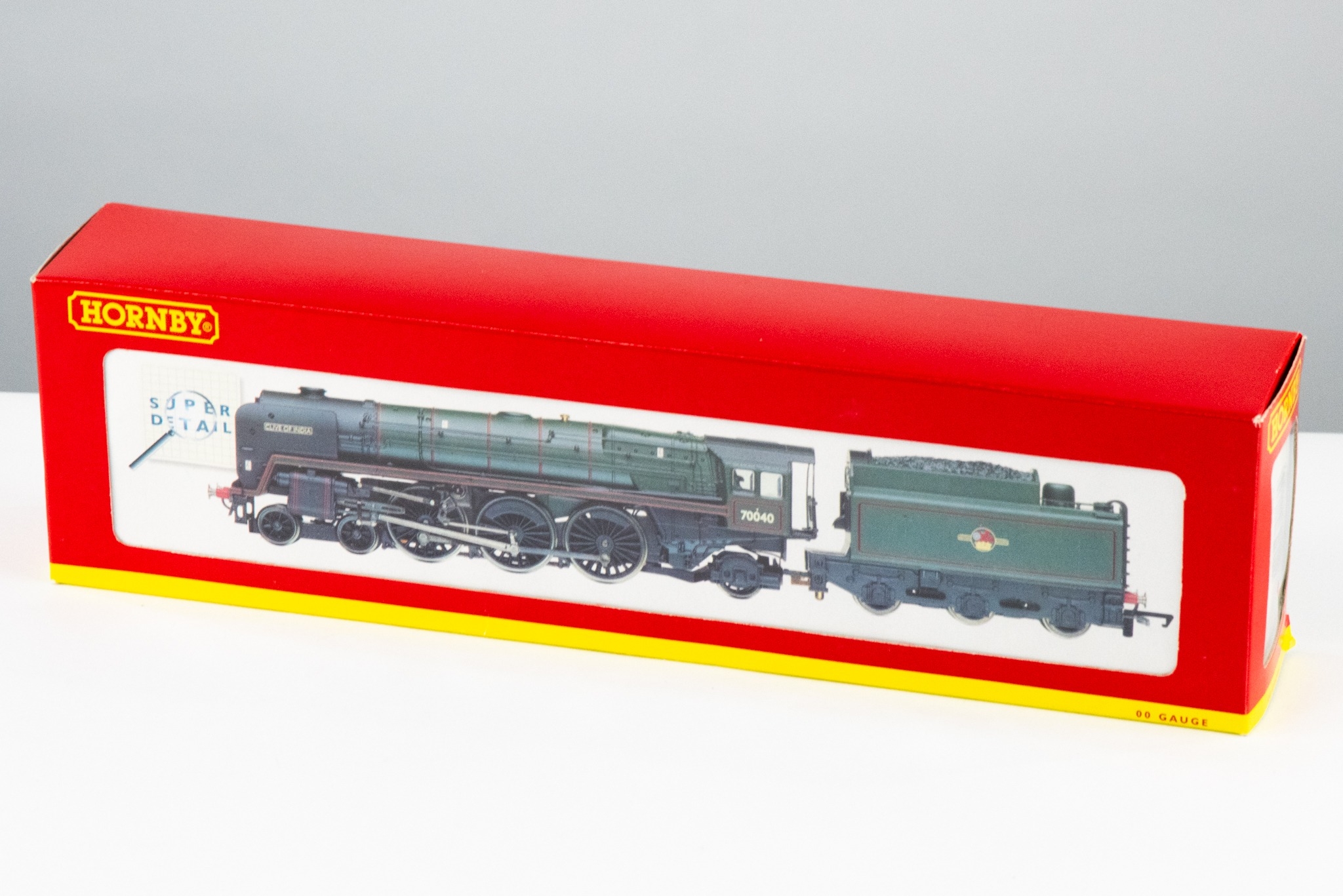 HORNBY (CHINA) SUPER DETAIL MINT AND BOXED '00' GAUGE 4-6-2 BRITANNIA CLASS 7MT LOCOMOTIVE AND TENDER 'CLIVE OF INDIA' No 70040 in BR green livery, model No R2180, box good
