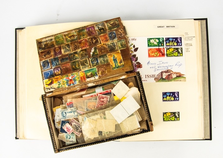 BALANCE OF A COLLECTION TO TWO SENATOR STAMP ALBUMS, two binders plus various on leaves