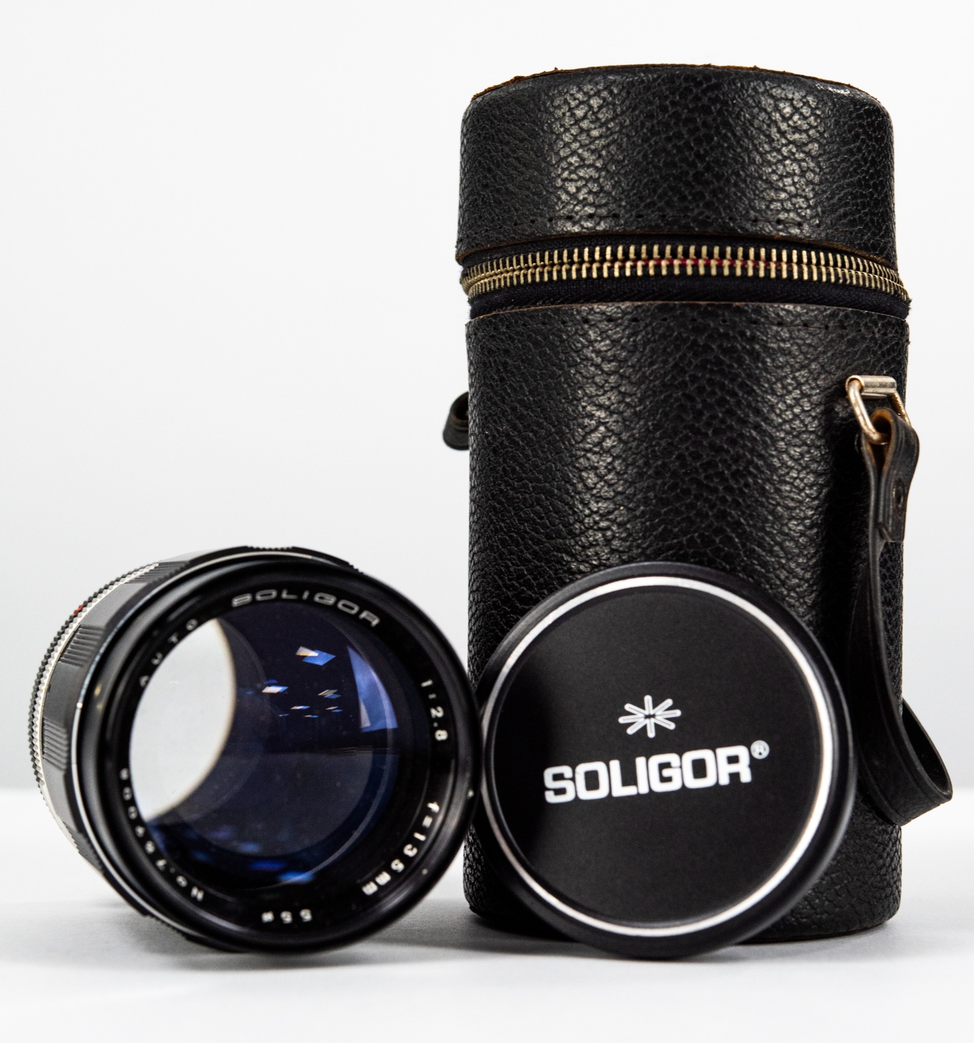 AUTO-SOLIGOR CAMERA ZOOM LENS 1:2.8 f=135mm 55 No 789008; together with a ZEISS ICON BOX TENGOR BOX CAMERA (2)