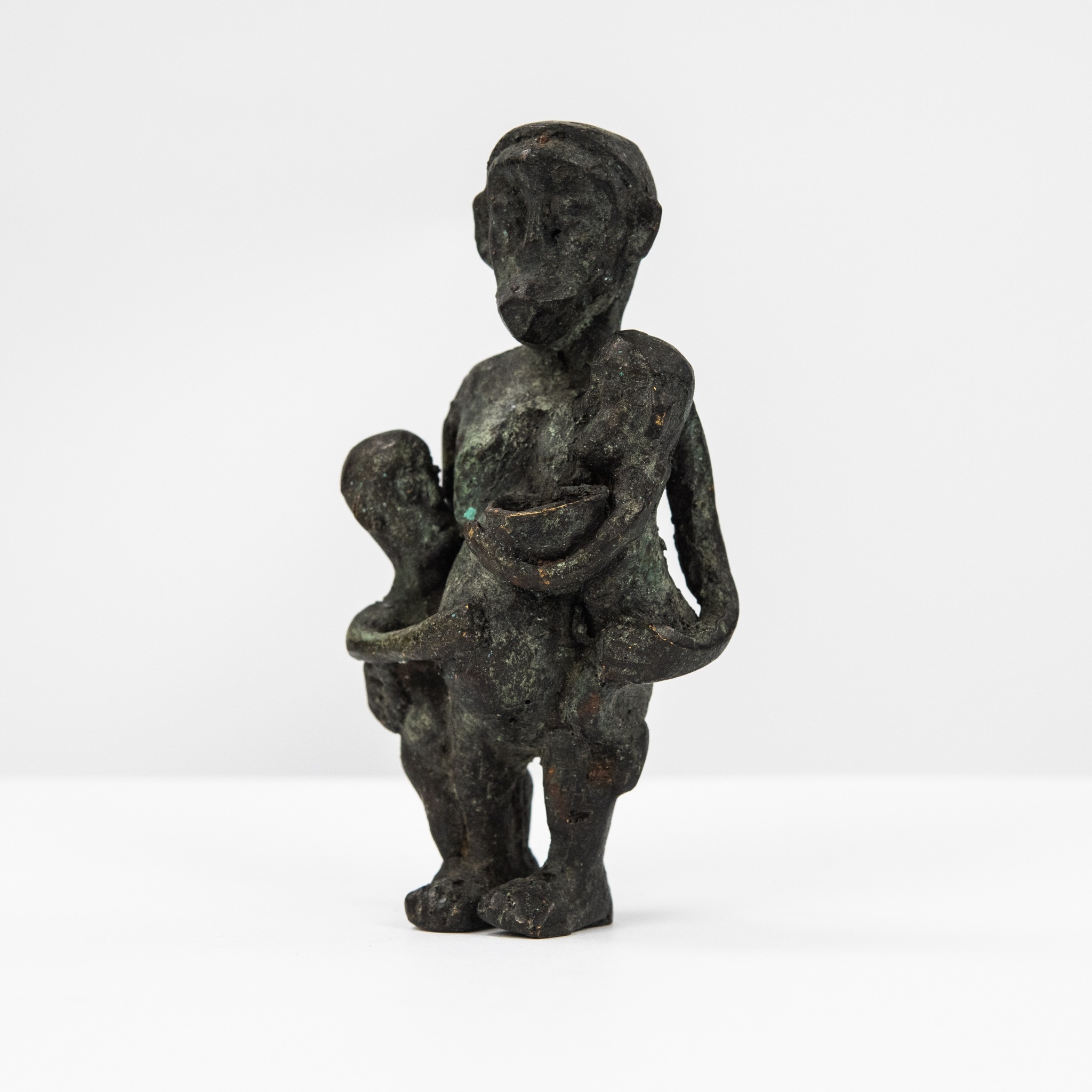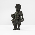 SMALL AFRICAN CAST BRONZE GROUP OF A MOTHER CARRYING TWO YOUNG CHILDREN, 4 1/4" high