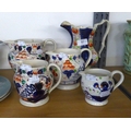 FIVE NINETEENTH CENTURY ENGLISH CERAMIC JUGS WITH IMARI DECO...