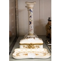 A PAIR OF COALPORT 'PAGEANT' PATTERN CANDLESTICK, WITH CYLINDRICAL COLUMNS, QUATREFOIL SCONCES AND BASES, 8" HIGH AND A LIMOGES FRENCH PORCELAIN 'DUBARRY' PATTERN OBLONG TRINKET BOX AND MATCHING TRINKET TRAY, WHITE WITH GILT FLORAL BOUQUETS, GILT METAL MOUNTS TO THE HINGED LID, 4 1/4" WIDE