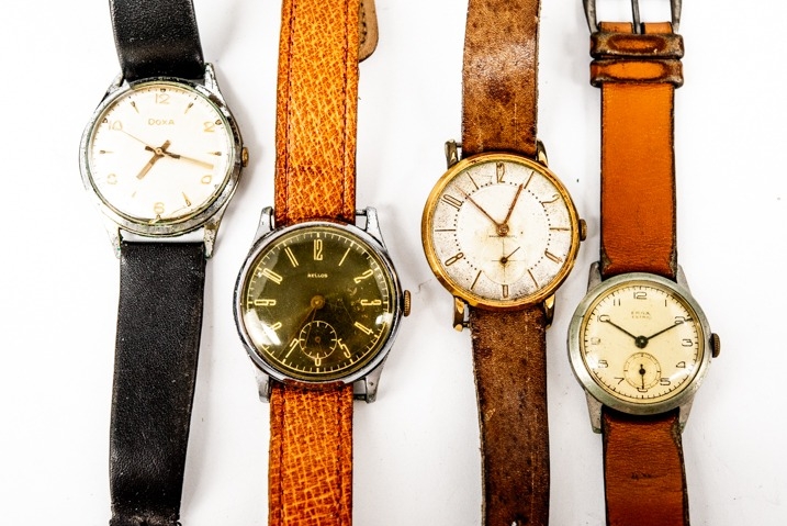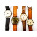 A GENT'S RELLOS WRIST WATCH with Arabic black circular dial, mechanical movement, leather strap, working; and THREE OTHER GENT'S ANALOGUE WRIST WATCHES (not working) (4)