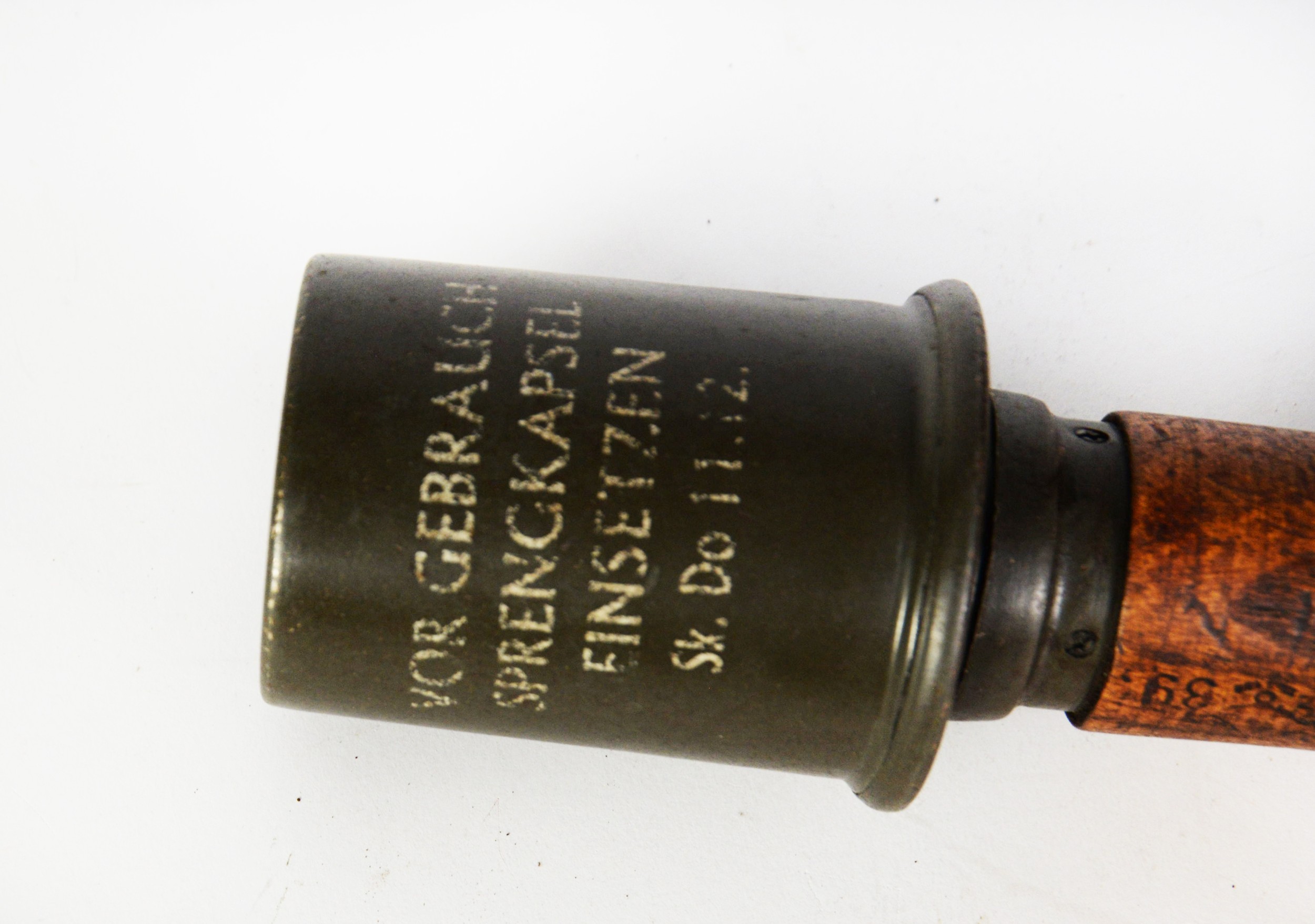 GERMAN PRACTICE STICK GRENADE, stamped on the wooden handle HKZ 39, 14 1/2in (36.5cm) long, marked SK. Do.11.12 on the metal top